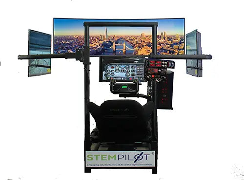 The Pilot Pro 4i Curve is capable of flying from every airfield on the planet in one of 50+ aircraft. Students will plan and fly flights using basic algebra, geometry, trigonometry, physics, geography and topography. Each Pilot Pro has tutored simulator learning missions teaching all of the fundaments by flying through boxes in the sky.